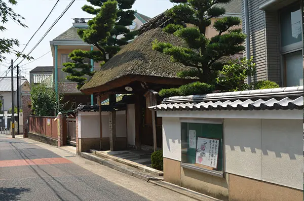 京都の洛西にある西光寺は、浄土宗の開祖 法然上人のご遺骸を約8ヶ月間 お隠してお護りした寺院です。 嘉禄3年(1227年)に、法然上人のお念仏の教えに反対した勢力が、大谷 (現知恩院)の法然上人のお墓を破壊して、そのご遺骸を鴨川に流すという 計画をしました。その企てを知ったお弟子達が、奥嵯峨の二尊院にご遺骸を 移して、お隠ししました。 しかし、すぐ知れわたりましたので、密かに当寺にお移ししました。そして、西光寺の開祖 来迎房圓空上人が、翌年の1月25日まで、ご遺骸をお護りしました。その後ご遺骸は、京都の西山の粟生野(後に光明寺)で、茶毘(火葬)に伏されました。 山門は、嘉禄の法難当時が偲ばれるように茅葺造りです。中央に、尋声という額があります。尋とは「たずねる」という意味があり、お念仏の声が偲ばれる寺院ということから命名しています。